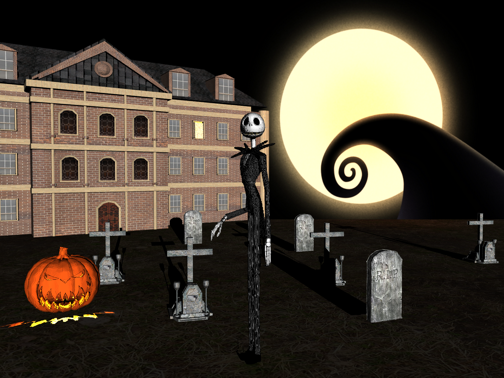 I found "Jack Skellington", the graves, and the pumpkin models and textures online thanks to Turbosquid and Sketchfab- please check the references underneath.
